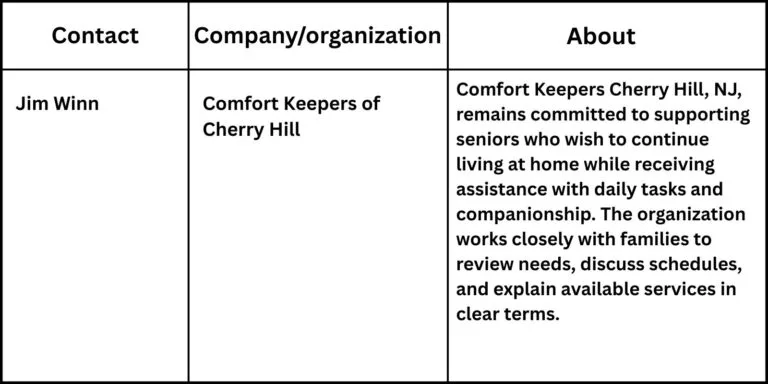Comfort Keepers Cherry Hill, NJ, remains committed to supporting seniors who wish to continue living at home while receiving assistance with daily tasks and companionship. The organization works closely with families to review needs, discuss schedules, and explain available services in clear terms.