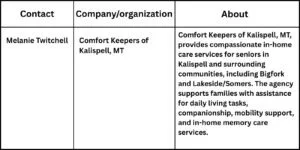 “Our team focuses on dependable support and strong caregiver connections so families feel confident in the care their loved ones receive every day,” said Melanie Twitchell, owner of Comfort Keepers of Kalispell, MT.