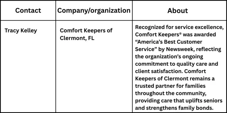 “Families deserve support they can feel confident about, especially during moments of transition,” said Tracy Kelley, owner of Comfort Keepers of Clermont, FL. “Our goal is to offer care that feels respectful, consistent, and rooted in genuine compassion.”