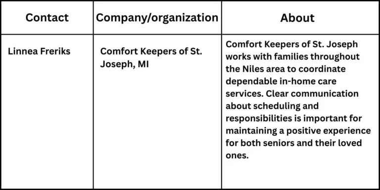 Comfort Keepers of St. Joseph works with families throughout the Niles area to coordinate dependable in-home care services. Clear communication about scheduling and responsibilities is important for maintaining a positive experience for both seniors and their loved ones. This commitment to structured processes and consistent service reflects the organization’s recognition as a 2018 Circle of Excellence award recipient by the National Business Research Institute, highlighting strong client satisfaction and operational standards.