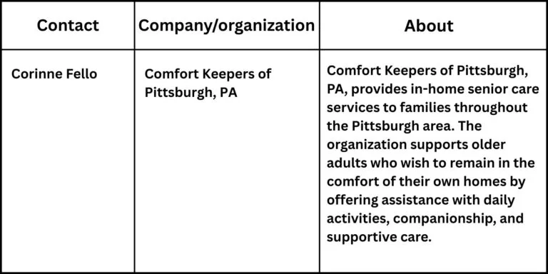 Comfort Keepers of Pittsburgh, PA, continues to work with families throughout the region who are exploring ways to support aging in place. By assisting with daily tasks and meaningful companionship, caregivers help seniors maintain comfort, confidence, and connection within their homes.