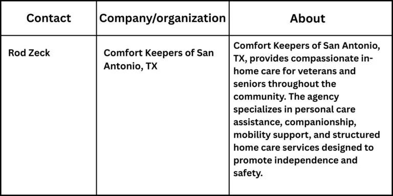 “Veterans and their families deserve clear guidance and dependable support when navigating VA home care programs. Our team remains committed to helping families understand their options and access compassionate care with confidence,” said Rod Zeck, owner of Comfort Keepers of San Antonio, TX.