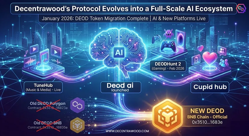Decentrawood today confirmed that its AI-focused ecosystem has completed a major transition, formally evolving into a full-scale AI protocol. This development brings together a completed DEOD token migration, the launch of DEOD AI, and the rollout of new consumer-facing platforms across music, gaming, and digital culture.