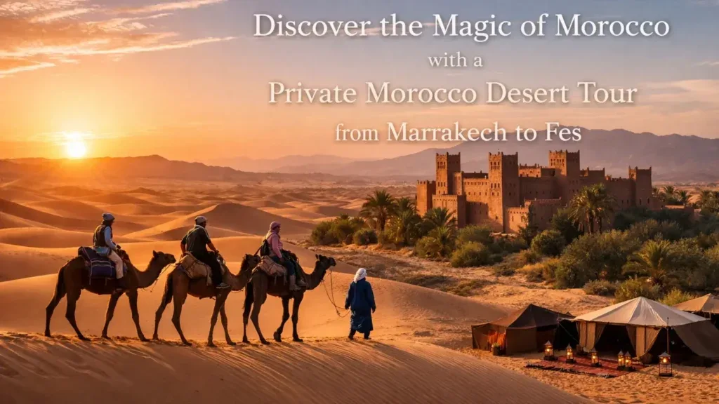 Marrakesh, Morocco – Morocco Desert Camps is proud to introduce one of its most sought-after travel experiences: the 4 Days Private Morocco Desert Tour from Marrakech to Fes. This exclusive journey offers travelers a unique opportunity to explore Morocco’s most iconic landscapes, from the vibrant streets of Marrakech to the golden dunes of the Sahara and the cultural richness of Fes.
