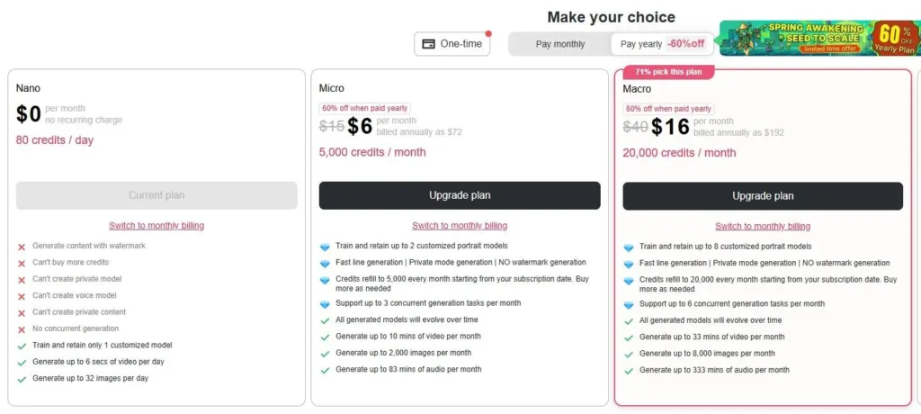 What about using APOB AI? While the platform gives you 80 free credits a day upon registration, this is only enough for one or two small tests a day. If you are serious and want to produce 10 videos daily, you will consume a massive amount of computing resources. Professional creators usually jump straight to the highest-tier Macro subscription plan. If billed annually, the amortized cost is only about $16 per month.