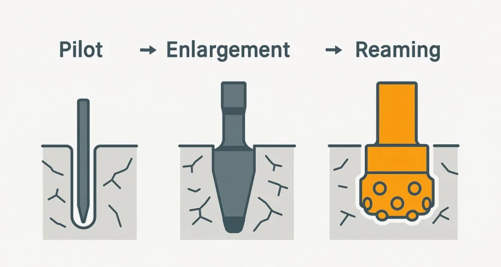 Rock drilling success doesn’t come from force; it comes from respecting sequence. A good pilot enables clean enlargement. Clean enlargement enables safe reaming. And safe reaming delivers a fully gauged, straight, predictable hole. Follow the order, and the job goes smoothly. Skip any part of it, and the formation will punish you—quickly and expensively.