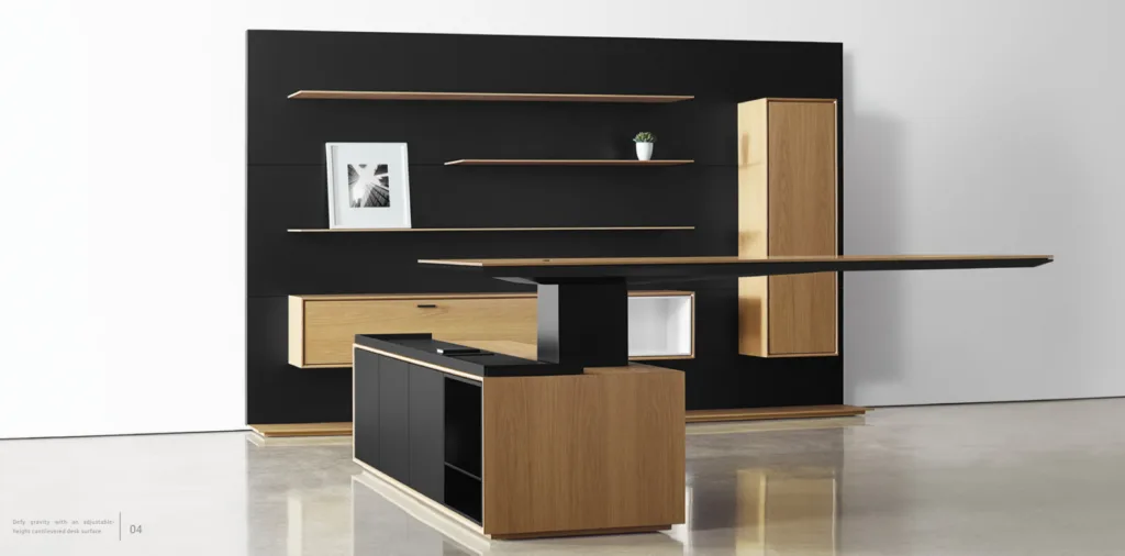 Eureka Ergonomic’s products emphasize material quality and craftsmanship, enhancing the desk’s presence within a space through premium finishes and refined detailing. While maintaining the solid and composed character of traditional wooden office furniture, they also integrate naturally into modern executive office environments, achieving a visually balanced transition.