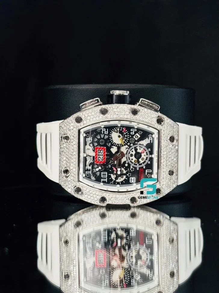 Rubber strap moissanite watches combine sporty comfort with luxury sparkle. The watch becomes lightweight and comfortable because of its rubber strap, while the moissanite stones create a luxurious iced-out appearance….