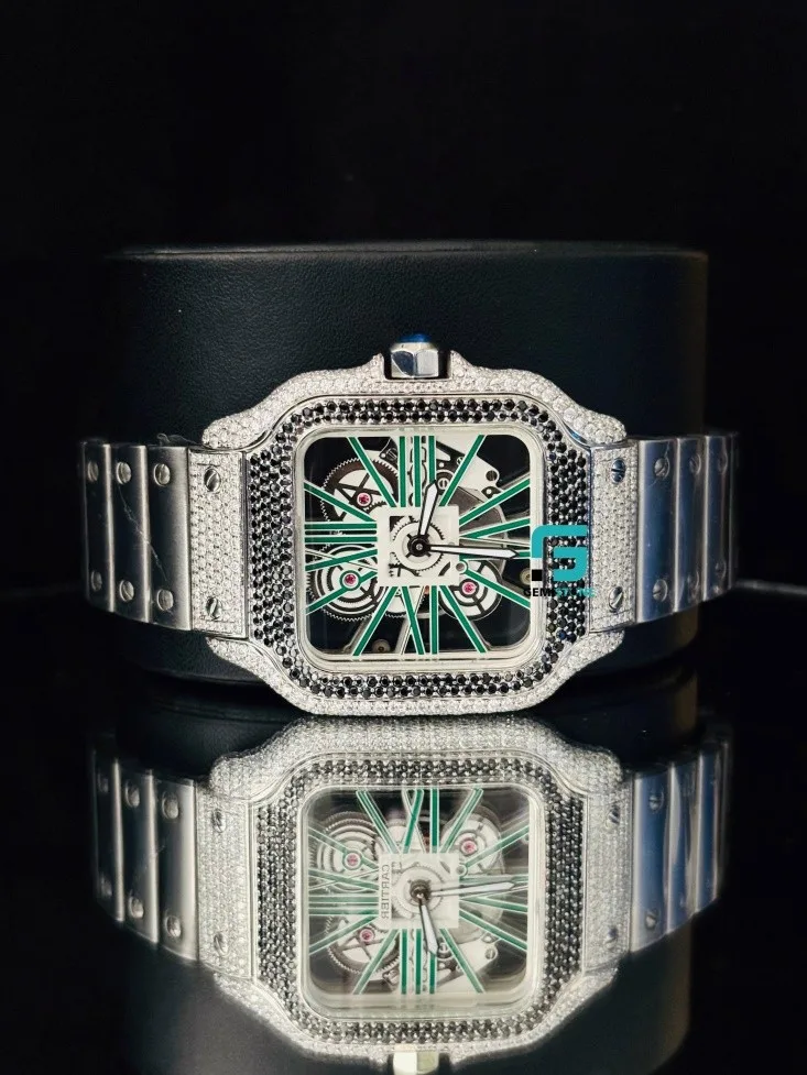 Adding Moissanite stones to a skeleton watch creates a perfect combination of technical craftsmanship and luxury brilliance.