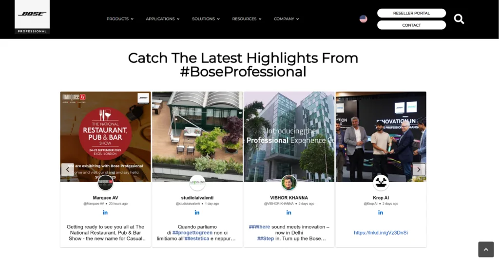 - Bose Professional: Doubled website engagement by showcasing curated posts from actual customers.