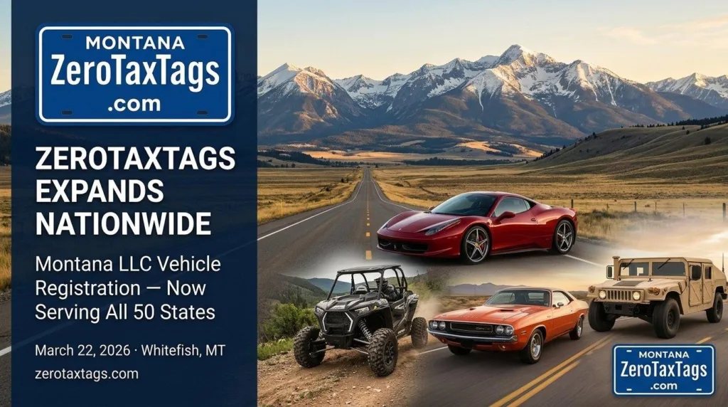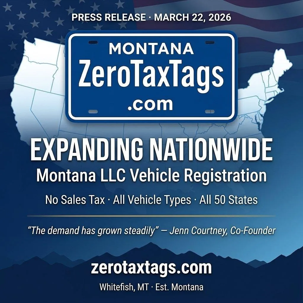 ZeroTaxTags, a Montana-based vehicle registration service, is expanding its nationwide operations to serve more vehicle owners seeking Montana LLC formation and registration solutions across the United States.